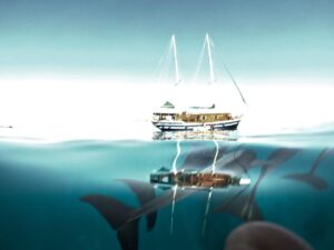 La première croisière était sur le thème de la Biodanza. Il est difficile de donner une définition de la Biodanza mais elle invite à retrouver de notre humanité au travers du mouvement corporel, de danses sans codes mais inspirées par une intention et une musique que le facilitateur propose au groupe. Manuela Pointet fait cela a merveille avec toute son expérience et sa délicatesse et ce, en parfaite adéquation avec ce travail fin de rencontre que l’on fait avec les dauphins.